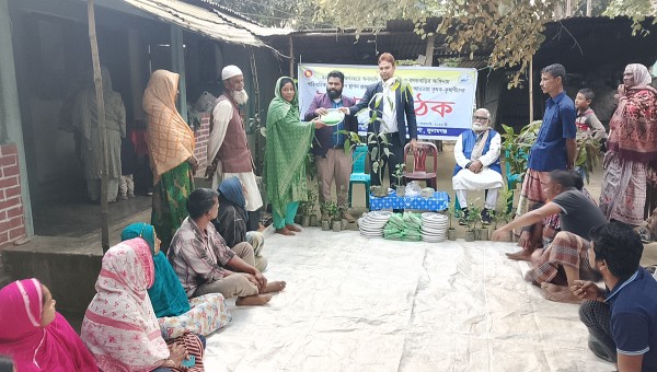 উঠান বৈঠকে ২০ জন কৃষক - কৃষাণীদের মধ্যে দুটি করে গাছের চারা,কয়েক জাতের বীজের প্যাকেট, ১ টি করে খাবার থালা ও উপস্থিত সকলের মধ্যে খাবার বিতরণ করা হয়।