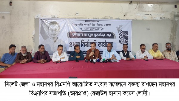 আজ শনিবার সিলেট-১ আসনে বিএনপি মনোনীত প্রার্থী খন্দকার আব্দুল মুক্তাদিরের প্রধান নির্বাচনী কার্যালয়ে সিলেট জেলা ও মহানগর বিএনপি আয়োজিত এক সংবাদ সম্মেলনে মহানগর বিএনপির সভাপতি (ভারপ্রাপ্ত) রেজাউল হাসান কয়েস লোদী এসব অভিযোগ তুলে ধরেন। তিনি লিখিত বক্তব্যে বলেন, দেশের গণতান্ত্রিক ধারা যখন জাতীয় সংসদ নির্বাচনকে কেন্দ্র করে এগিয়ে চলছে, ঠিক তখনই একটি পরাজয় নিশ্চিত রাজনৈতিক গোষ্ঠী দেশব্যাপী অস্থিতিশীলতা তৈরির অপচেষ্টা চালাচ্ছে।