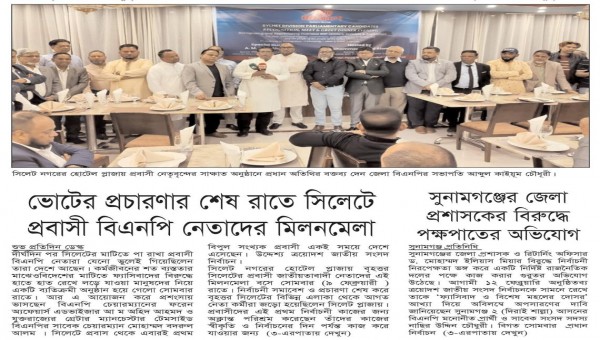 ভোটের প্রচারণার শেষ রাতে সিলেটে প্রবাসী বিএনপি নেতাদের মিলনমেলা