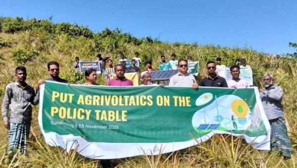বাংলাদেশের নবায়নযোগ্য জ্বালানি নীতিমালায় ‘বিজলি কৃষি’ অর্থাৎ কৃষিজমিতে সোলার বিদ্যুৎ উৎপাদনকে অন্তর্ভুক্ত করার দাবিতে সুনামগঞ্জের চিনাউড়া আনারস বাগানে কৃষক সমাবেশ অনুষ্ঠিত হয়েছে।