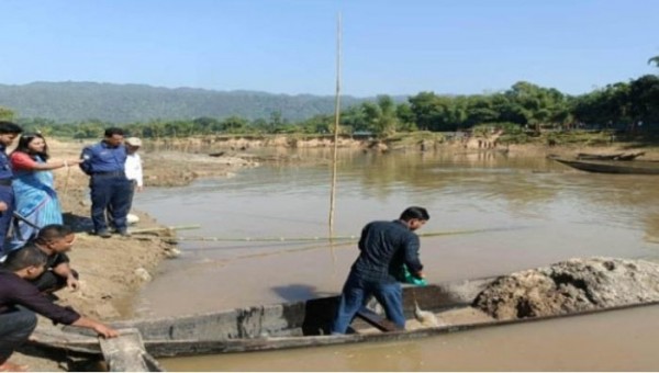জৈন্তাপুরে নিষেধাজ্ঞা অমান্য করে বালু উত্তোলন : ১৮টি নৌকা ধ্বংস