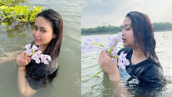 শেয়ার করা ছবিতে দেখা যায়, খোলামেলা চুলে, কালো টি-শার্ট পরে ভাবনা কচুরিপানার ফুল হাতে ক্যামেরাবন্দী হয়েছেন। ফুলের সঙ্গে তার মায়াবী চাহনী নেটিজেনদের নজর কেড়েছে।