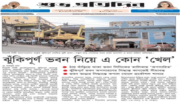 #ঠায় দাঁড়িয়ে থাকা ভবন সিসিকের তালিকায় 'অপসারিত' #ঝুঁকিপূর্ণ ভবন অপসারণের সিদ্ধান্ত কাগজেই সীমাবদ্ধ #ভবন ভাঙার সিদ্ধান্তে কপাল খোলে প্রকৌশল শাখার সিলেট সিটি কর্পোরেশনের ঝুঁকিপূর্ণ ভবনের তালিকা অনুযায়ী 'অফিস নথিতে' মোট চারটি ভবন অপসারণের কথা উল্লেখ থাকলেও বাস্তবে এর সত্যতা মিলেনি। কর্পোরেশনের প্রকাশিত নথিতে কালেক্টরেট ভবন-৩, পৌর বিপণি এবং পৌর শপিং সেন্টার-এই তিনটি ভবনকে অফিসের নথিতে 'অপসারিত' হিসেবে দেখানো হলেও সরেজমিন গিয়ে দেখা যায়, সবগুলো ভবনই অক্ষত অবস্থা ঠায় দাঁড়িয়ে আছে। শুধু তাই নয়, কালেক্টরেট ভবন-৩-এএখনো নিয়মিত অফিস কার্যক্রম চলছে, যেখানে নোটিশ অনুযায়ী ভবনটি পরিত্যক্ত ঘোষণা করা ছিল। ঝুঁকিপূর্ণ ঘোষণা সত্ত্বেও ভবনগুলো এখনও থাকার বিষয়টি নিয়ে জনমনে প্রশ্ন তৈরি হয়েছে। কাগজে-কলমে অপসারণ দেখানো হলেও বাস্তবে ভবনগুলো ভেঙে না ফেলা-এটিকি তদারকির অভাব, নাকি লোক দেখানো, এমন প্রশ্ন এখন সাধারণ মানুষের মাঝেও ঘুরপাক খাচ্ছে। সিলেটের প্রাণকেন্দ্র জিন্দাবাজারে দাঁড়িয়ে থাকা 'রাজা ম্যানশন'। সিলেট বাসীর কাছে ঐতিহ্যবাহী একটি ভবন। সিলেটের রাজা পরিবারের সম্পত্তি হিসেবে এর রয়েছে এক ধরনের আলাদা মর্যাদা। সেই বংশের পূর্বপুরুষ মরমি কবি হাছন রাজার নামও এর সঙ্গে জড়িয়ে আছে। বহুদিন ধরেই ভবনটি ঝুঁকিপূর্ণ বলে জানা যায়। তবুও ঝুঁকিপূর্ণ এই ভবনে প্রতিদিন হাজারো মানুষের জীবনের ঝুঁকি বাড়িয়ে দিচ্ছে। কাগজে-কলমে ঝুঁকিপূর্ণ ঘোষিত হলেও বাস্তবে ভবনটি এখনো ব্যবহৃত হচ্ছে, চলছে ব্যাবসা-বাণিজ্য, প্রতিনিয়ত প্রবেশ করছে অসংখ্য ক্রেতা। জানা যায়, রাজা পরিবারও একসময় ভবনটি ভেঙে নতুন করে নির্মাণের চিন্তা করেছিল। কিন্তু ব্যবসায়ীদের আপত্তি আর নানা জটিলতায় সেই উদ্যোগ আর বাস্তবায়ন হয়নি। খোঁজ নিয়ে জানা যায়, ভবনটি ভাঙার প্রস্তাব উঠলে ব্যবসায়ীদের একটি অংশ এর বিরোধিতা করে। তারা ভবন ছাড়তে অনিচ্ছুক হওয়ায় কাজ এগোয়নি। এমনকি অভিযোগ রয়েছে-সেই সময় ভবনটি ভাঙা ঠেকাতে সিটি কর্পোরেশনের কিছু প্রকৌশলীকে বড় অঙ্কের ‘হাদিয়া’ দেওয়া হয়েছিল। নাম প্রকাশ না করার শর্তে কয়েকজন ব্যবসায়ী এই তথ্য নিশ্চিত করেন। সরেজমিন ঘুরে দেখা যায়, ভবনটিতে নতুন করে রঙ করা হয়েছে। বাইরের রঙে ভবনকে কিছুটা নতুন রূপ দেওয়ার প্রয়াস থাকলেও দেয়াল ও কাঠামোর ভেতরকার বাস্তবতা পালটায়নি। ভবনের বিভিন্ন অংশে স্পষ্ট দেখা যায় ফাটল। কোথাও কোথাও বড় চিড় ধরেছে। যে কোনো সময় বড় ধরনের দুর্ঘটনার ঝুঁকি থেকেই গেছে। ক্রেতাদের মাঝেও রয়েছে অস্বস্তি ও আতঙ্ক। লোকমান নামের একজন ক্রেতা জানান, তিনি নিয়মিত বই কেনার জন্য রাজা ম্যানশনে যান, কিন্তু প্রতিবারই এক ধরনের ভয় কাজ করে-মনে হয় হঠাৎ 