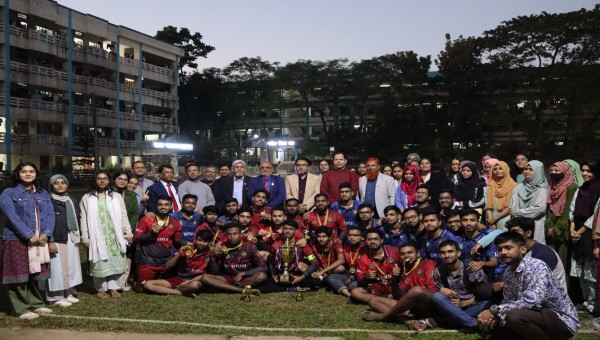 সিলেট কৃষি বিশ্ববিদ্যালয়ের(সিকৃবি) মাৎসবিজ্ঞান অনুষদীয় ছাত্র সমিতির আয়োজনে ফিশারিজ সুপার লীগ-২০২৫ এর পুরস্কার বিতরণী অনুষ্ঠিত হয়েছে। ০৯ ডিসেম্বর (মঙ্গলবার) বিশ্ববিদ্যালয়ের কেন্দ্রীয় খেলার মাঠে ফিশারিজ সুপার লীগ-২০২৫ এর পুরস্কার বিতরণী অনুষ্ঠানে মাৎসবিজ্ঞান অনুষদীয় ডিন প্রফেসর ড. নির্মল চন্দ্র রায়ের সভাপতিত্বে প্রধান অতিথি হিসেবে উপস্থিত থেকে বিজয়ীদের হাতে পুরস্কার তুলে দেন সিকৃবি’র ভাইস-চ্যান্সেলর প্রফেসর ড. মোঃ আলিমুল ইসলাম। বিশেষ অতিথি হিসেবে উপস্থিত ছিলেন ট্রেজারার প্রফেসর ড. এ.টি.এম. মাহবুব-ই-ইলাহী, ছাত্র পরামর্শ ও নির্দেশনা দপ্তরের পরিচালক প্রফেসর ড. মোহাম্মদ সামিউল আহসান তালুকদার ও প্রক্টর প্রফেসর ড. জসিম উদ্দিন আহাম্মদ, উক্ত ফিশারিজ সুপার লীগ-২০২৫ এর আহবায়ক সহযোগী প্রফেসর ড. মোহাম্মদ মোশারফ হোসেন প্রমুখ। পুরষ্কার বিতরণী অনুষ্ঠানে অন্যান্যের মধ্যে মাৎসবিজ্ঞান অনুষদের শিক্ষক, শিক্ষার্থী, কর্মকর্তা ও কর্মচারীবৃন্দ উপস্থিত ছিলেন।