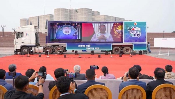 আজ সোমবার বিকেলে জাতীয় সংসদ ভবনের দক্ষিণ প্লাজায় ‘ভোটের গাড়ি’ শীর্ষক প্রচারণার আনুষ্ঠানিক উদ্বোধন অনুষ্ঠানে প্রধান উপদেষ্টা এসব কথা বলেন। আসন্ন ত্রয়োদশ জাতীয় সংসদ নির্বাচন ও ২০২৬ সালের গণভোট সামনে রেখে ভোটারদের সচেতন ও উদ্বুদ্ধ করতেই এই উদ্যোগ নেওয়া হয়েছে।