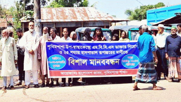 পৃথিমপাশা উপস্বাস্থ্য কেন্দ্রকে ২৫ শয্যা হাসপাতালে রূপান্তরের দাবিতে মানববন্ধন